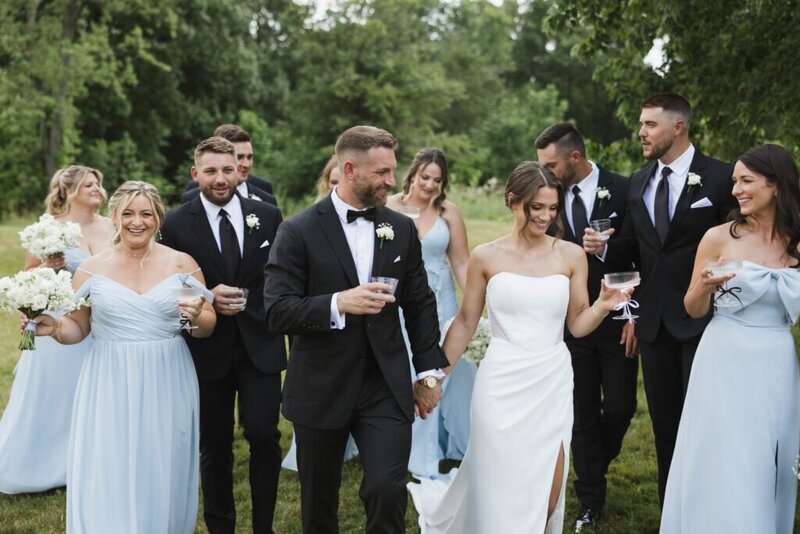 Briana and Daniel’s wedding at Aurora Meadows was timeless and elegant, with the perfect touch of blue. Their love story feels like fate. They grew up in neighboring towns, went to the same college, and shared many mutual friends. Yet, their paths didn’t officially cross until after graduation. A mutual friend introduced them in Columbus, and their friendship quickly grew into a beautiful relationship.